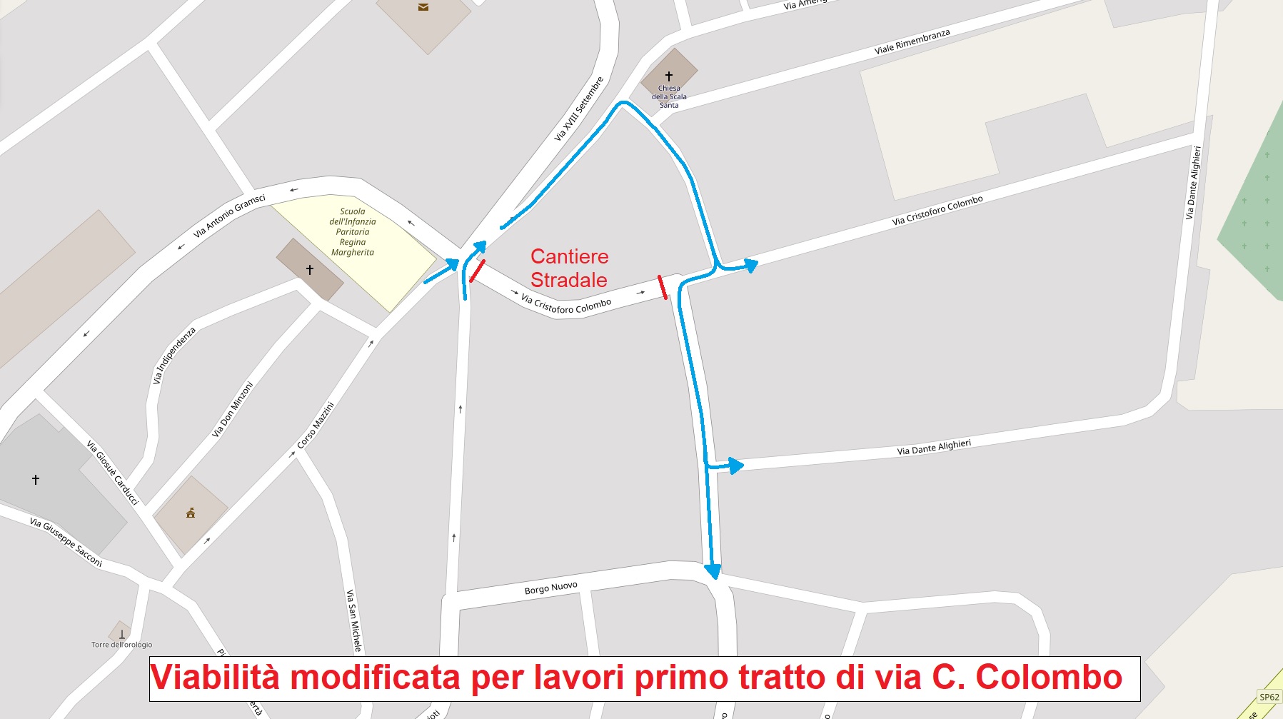 Si avvisa che dal 19 al 31 gennaio 2026 sarà chiuso al transito, per lavori, il tratto di via Colombo compreso tra gli incroci con via Patrioti e via Dante.